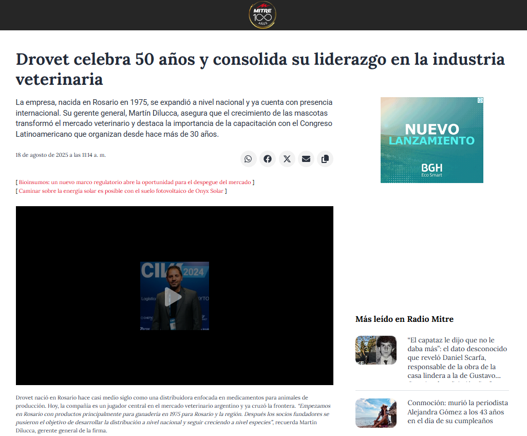 La empresa, nacida en Rosario en 1975, se expandió a nivel nacional y ya cuenta con presencia internacional. Su gerente general, Martín Dilucca, asegura que el crecimiento de las mascotas transformó el mercado veterinario y destaca la importancia de la capacitación con el Congreso Latinoamericano que organizan desde hace más de 30 años.